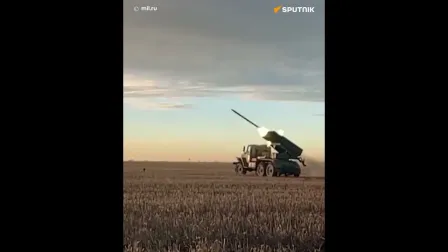💥 Lançadores múltiplos de foguetes Grad da Rússia disparam uma chuva de fogos sobre uma bate........