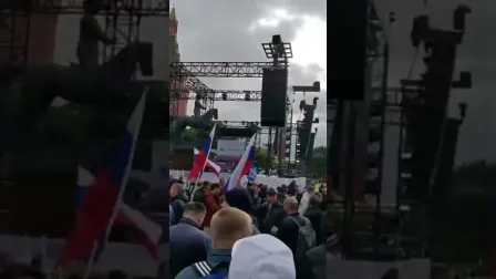 A concerted patriotic action is taking place on Moscow's Manezhnaya Square.