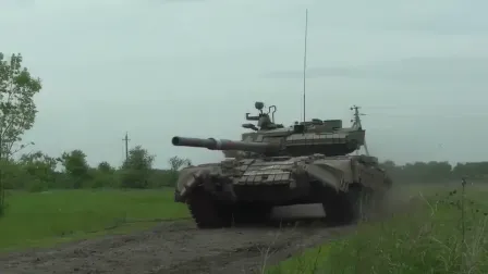 Боевая работа экипажей танков Т-80БВ и бронетранспортёров БТР-82А морской пехоты
