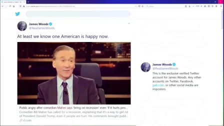 JAMES WOODS - 'At least we know one American is happy now' (Bill Maher wants economic recession!)
