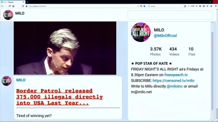MILO - 'Border Patrol released 375,000 illegals directly into USA...' ('Close borders for 10 years')