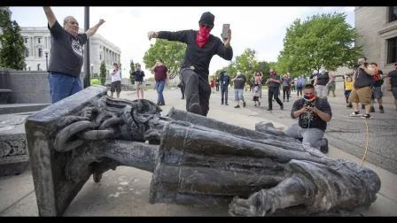 Derriban estatuas de Cristóbal Colón en Toda America en el dia de la Raza.